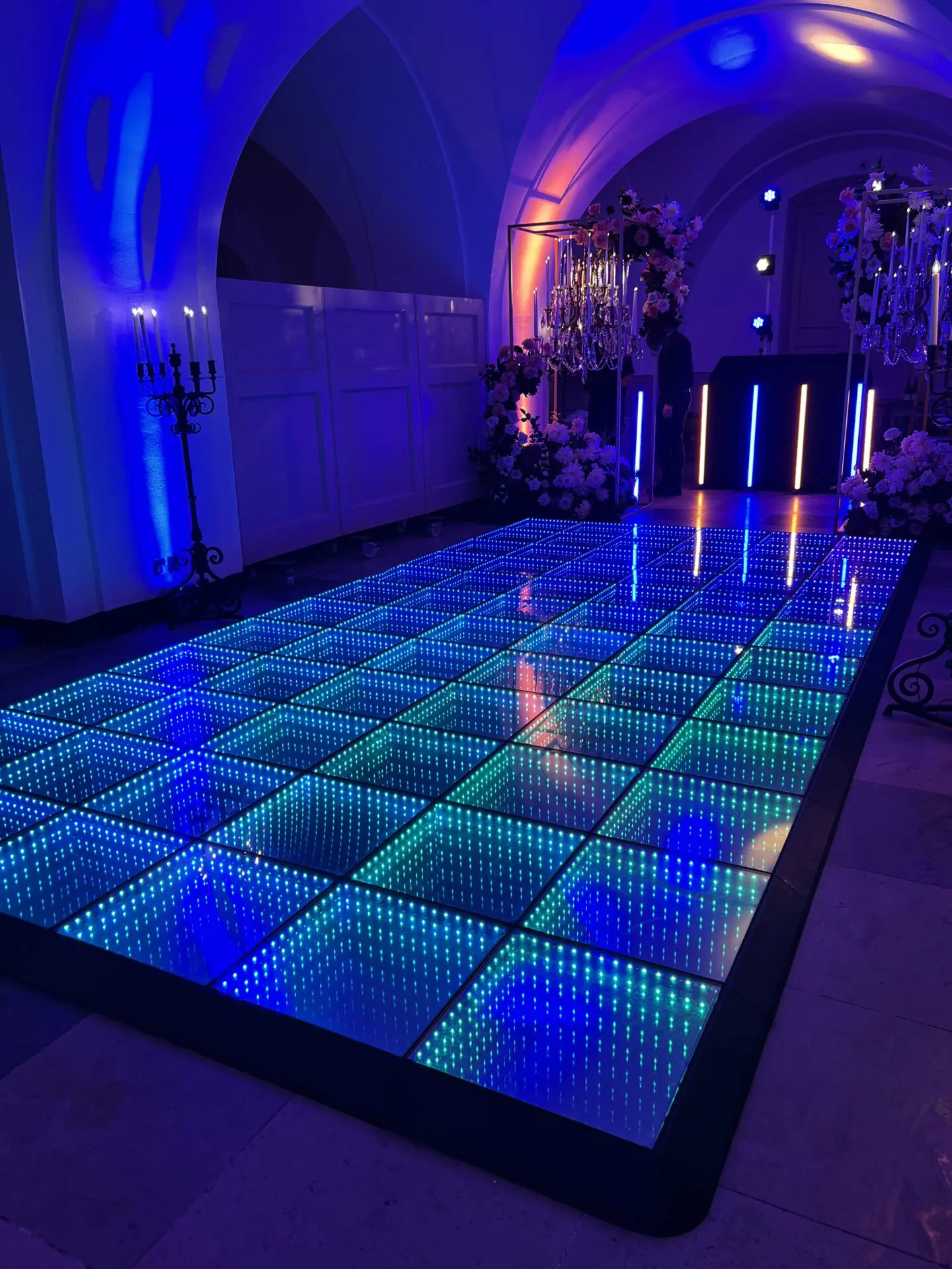 Transform your event with our 3D Infinity Dance Floor, a cutting-edge LED floor that creates a mesmerising, infinite light effect. Available in various sizes to fit your space and vision, our dance floor is perfect for corporate events, weddings, private parties, and more. Whether you want a sleek and elegant look or a high-energy, club-style atmosphere, our floor delivers an unforgettable experience.